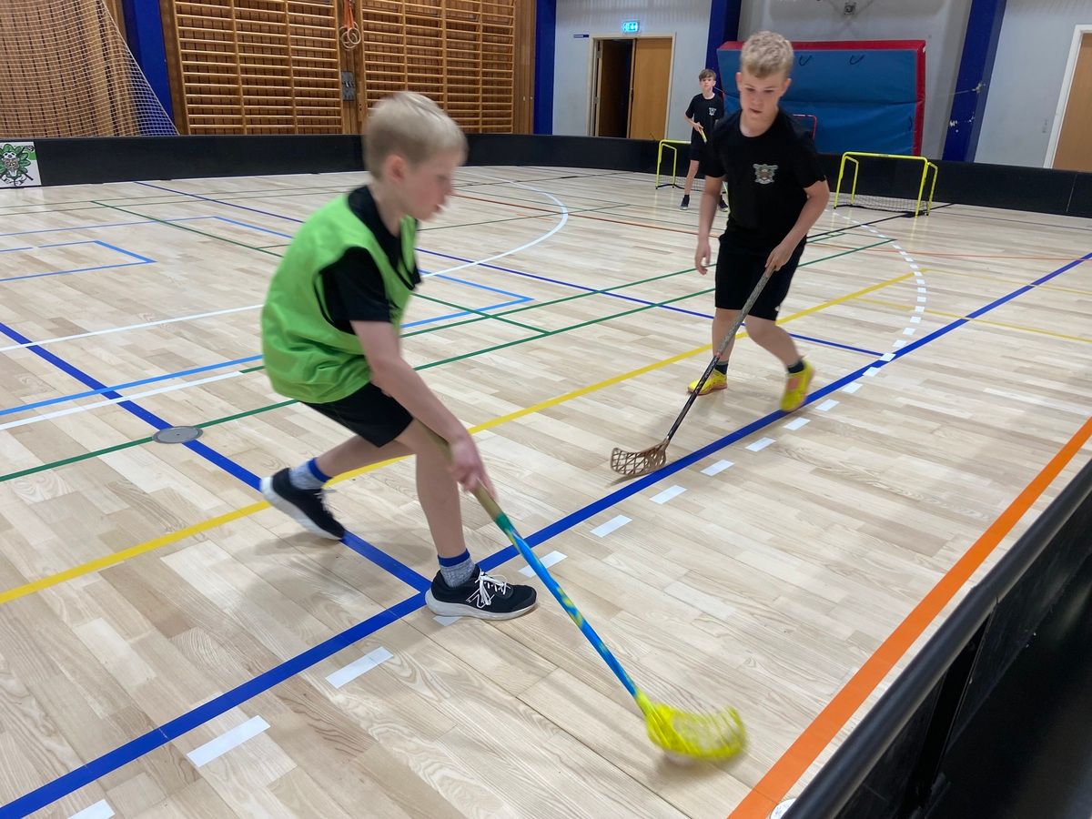 Til vores træning øver vi teknik med bold og stav, og at skyde på mål, og øver os i samspil og aflevering.